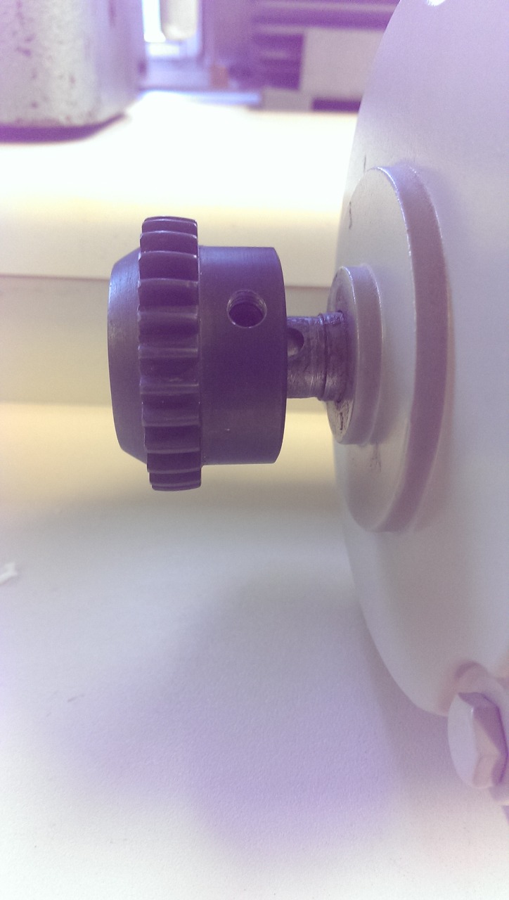 De tandwiel op de as van de motor telt 20 tanden, de tandwiel op de as van de reductor telt 17 tanden.