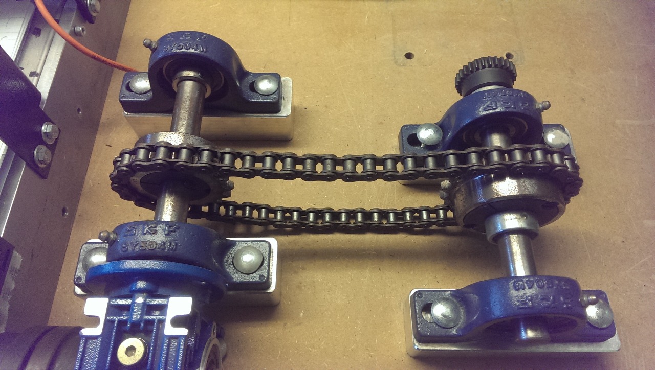 We gebruiken een rollenketting om de radiale bewegingen van de motoras over te brengen naar de as van de reductor. De ketting in mijn GIP telt 61 schakels.